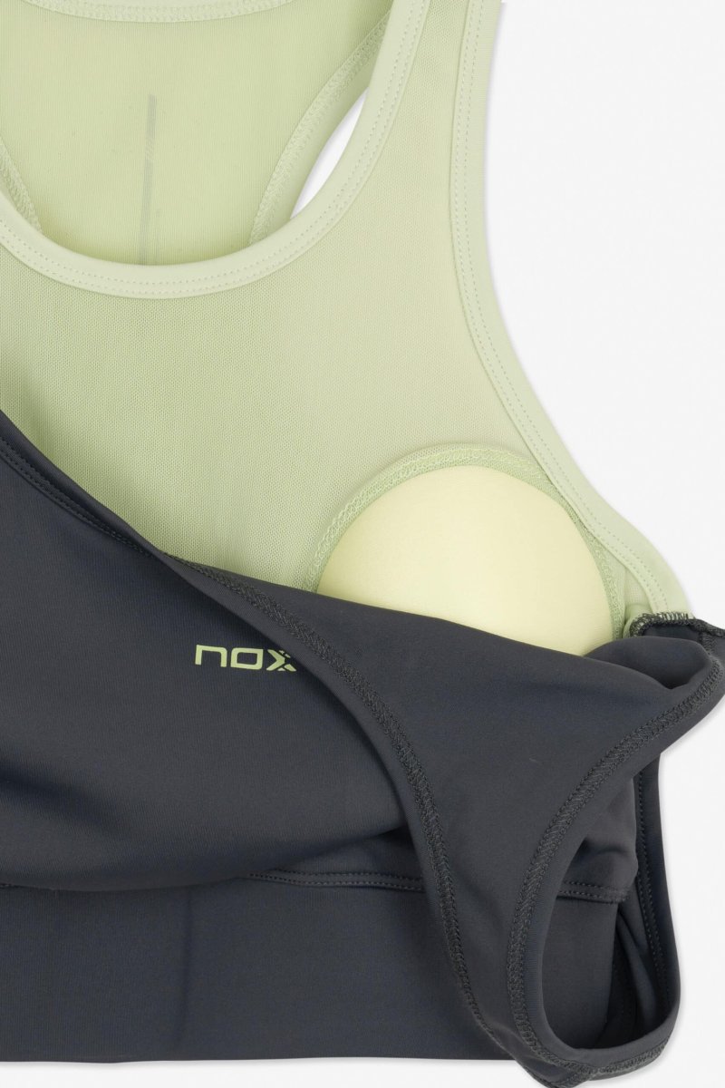 Idéale pour le padel, le fitness ou toute autre activité sportive, cette brassière technique vous accompagnera avec style et performance sur tous les terrains.