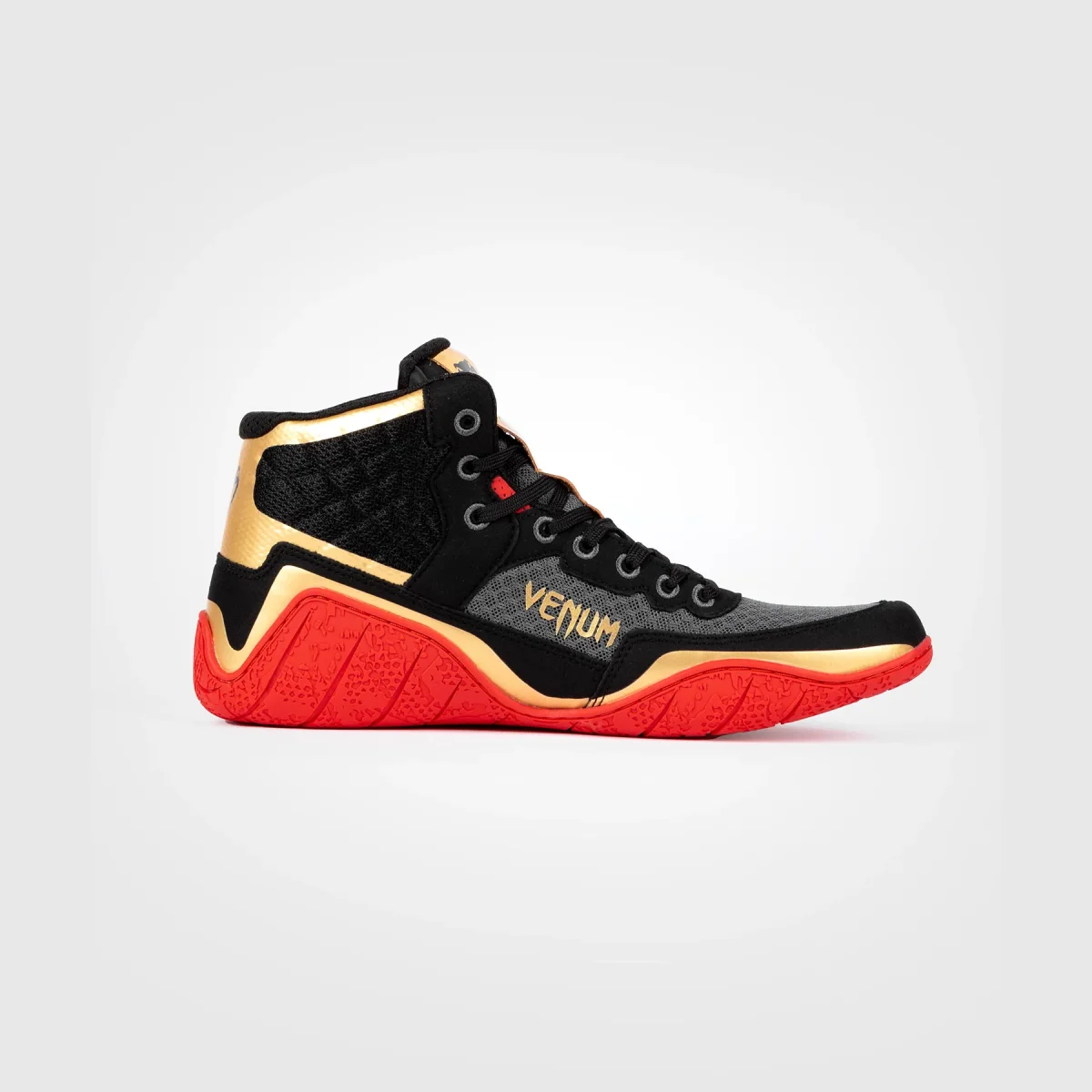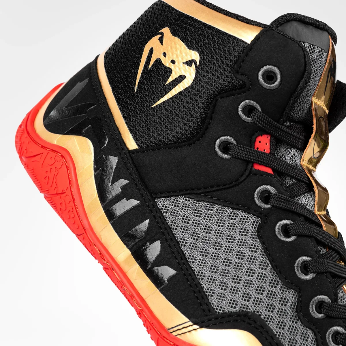Faites passer vos performances au niveau supérieur dans ce coloris noir, or et rouge, avec les logos Venum sur le côté et la languette.