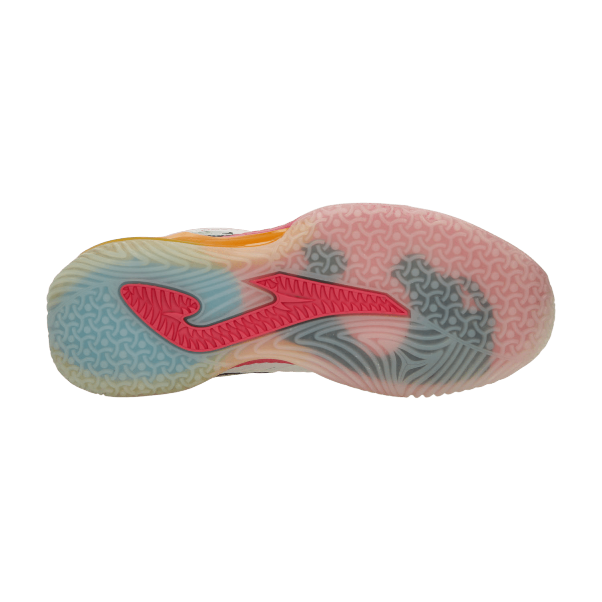 La semelle extérieure en caoutchouc DURABILITY, dotée de petits crampons circulaires, offre une adhérence exceptionnelle sur les surfaces de padel tout en facilitant les glissements pour des déplacements rapides.