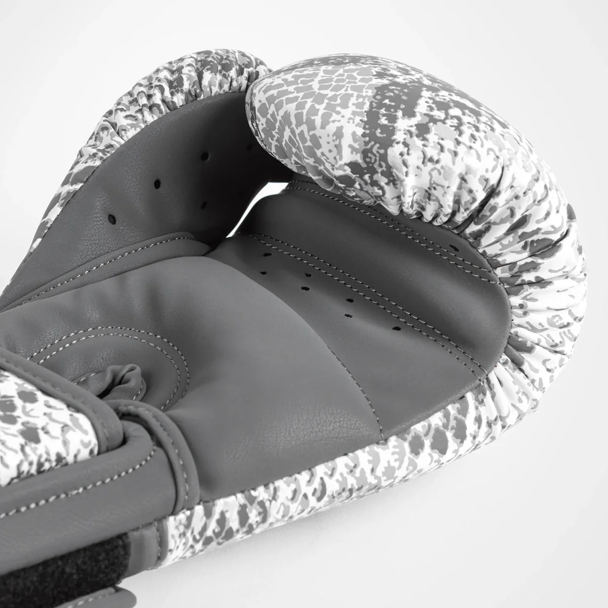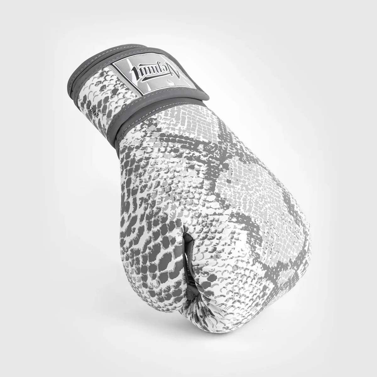 Inspirée par la force toujours renouvelée du serpent, Venum White Snake est une collection étonnante avec un imprimé peau de serpent blanc-gris et des détails argentés.