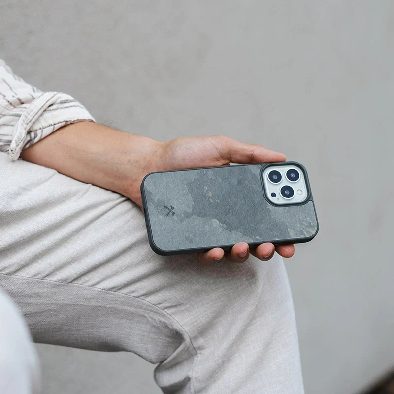 La coque iPhone 13 Pro Max unique en son genre, fabriquée en pierre véritable sélectionnée à la main et en silicone recyclé, protège ton iPhone contre les chutes jusqu'à 2 m de hauteur ! Ta coque pour iPhone en pierre est un véritable morceau de nature, avec des veines et une structure individuelles pour un look unique ! Avec des aimants intégrés pour une fixation solide de ton chargeur MagSafe !!