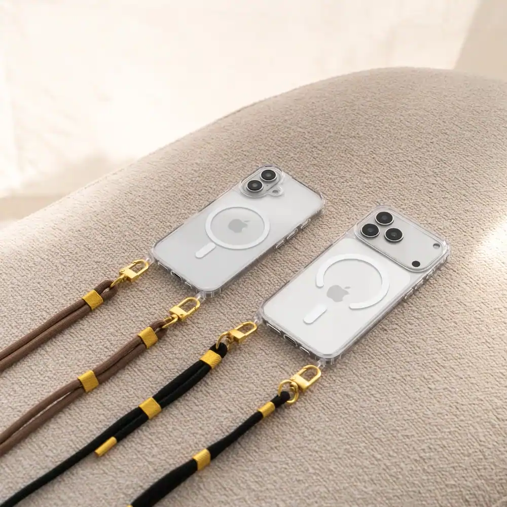 Notre Clear Case avec cordon universel pour ton iPhone 17! Grâce à des œillets presque invisibles, tu peux accrocher et décrocher sans problème les mousquetons dorés de ton cordon et les adapter à ta taille. Les aimants officiels N52 ultra puissants assurent une complète Compatibilité Apple MagSafe. La housse est en 100% de matériaux recyclés et protège non seulement ton iPhone mais aussi l’environnement.