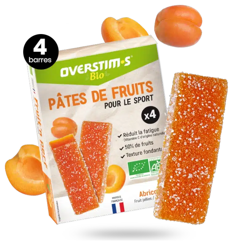 Les pâtes de fruits Bio Overstims à l’abricot offrent un apport énergétique naturel grâce à leur forte teneur en fruits bio et leur texture tendre, idéale pour une consommation rapide pendant l’effort. Associées à la vitamine C issue de l’acérola, elles contribuent à limiter la fatigue et à soutenir la vitalité des sportifs avant et pendant leurs activités.
