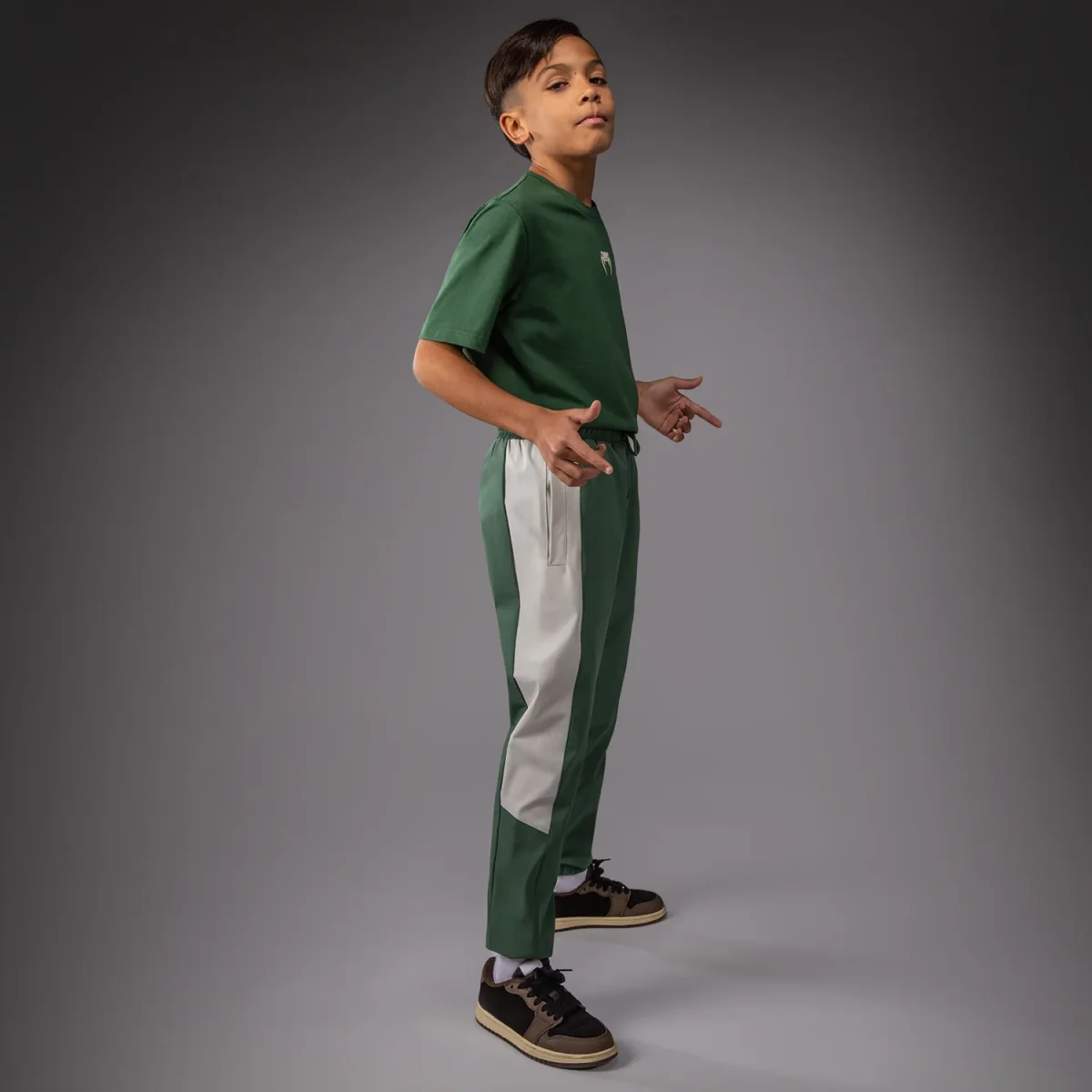 Découvrez Vectra, conçu pour les jeunes athlètes exigeants en performance et style, à la salle comme en dehors. Confectionné dans un tissu léger et résistant, cet ensemble accompagne votre enfant dans tous ses efforts. Le pantalon de jogging Vectra, léger, dispose de poches latérales ouvertes. Sa taille à cordon de serrage et ses chevilles élastiquées offrent maintien et confort. Associez-le à la veste de la même collection pour un look complet.