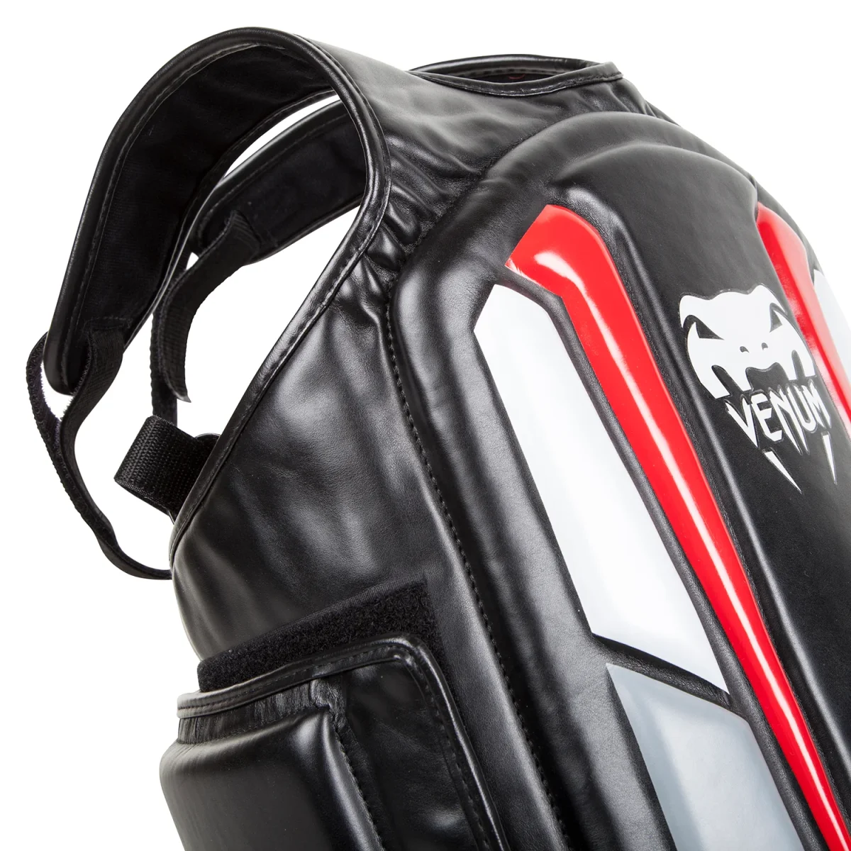 Le plastron de protection Venum « Elite » est conçu à partir d’un Cuir Skintex premium et bénéficie d’une triple couche de rembourrage haute performance.
