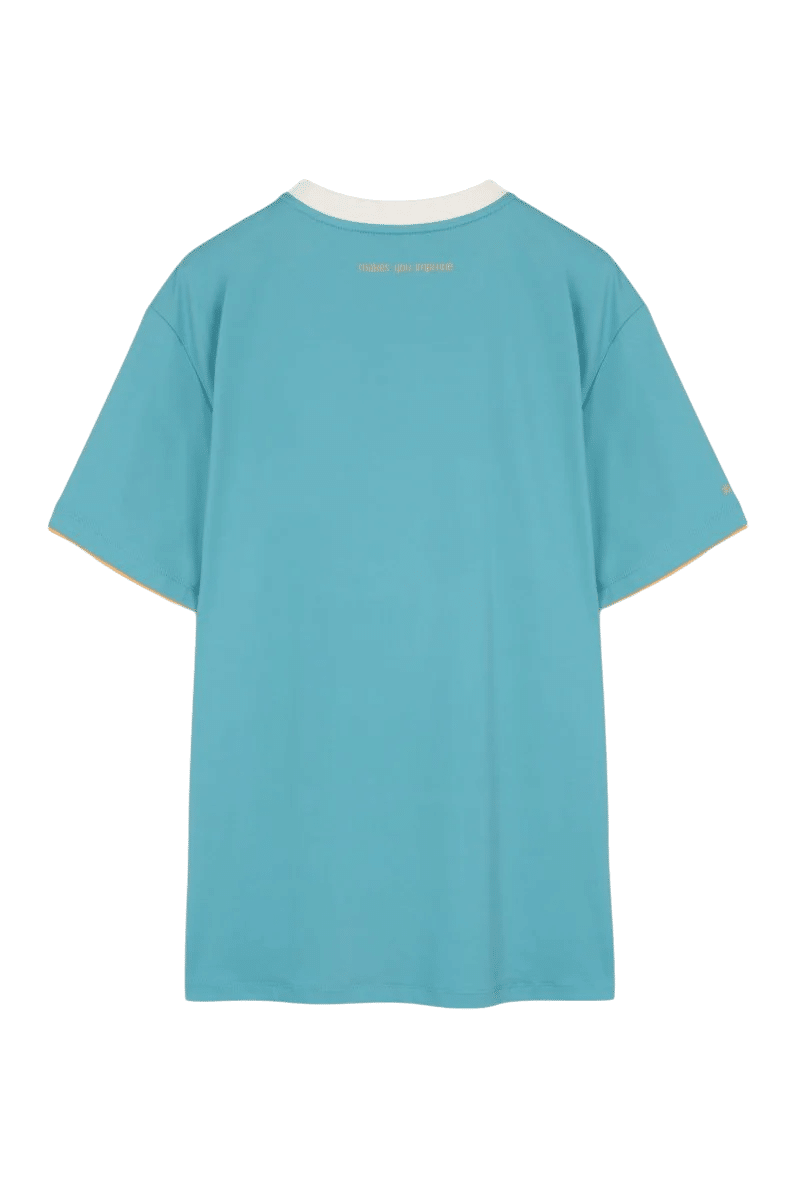 - Coupe ergonomique: Le design de ce maillot a été optimisé pour s’adapter confortablement au corps, garantissant un ajustement parfait qui bouge avec vous, idéal pour l’agilité que requiert le padel.