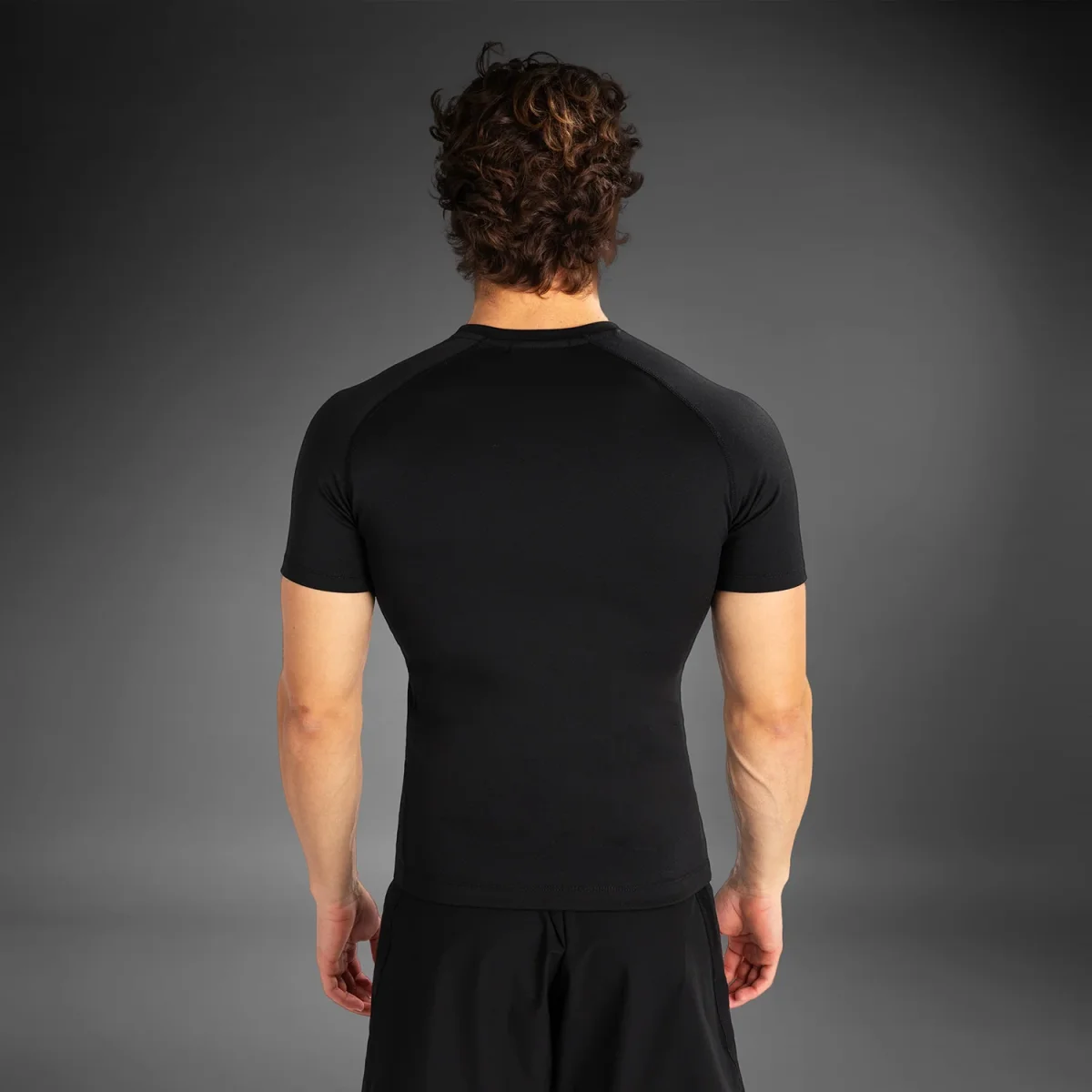Associez ce rashguard à manches courtes pour homme avec le short de combat ou les guêtres de la même collection.