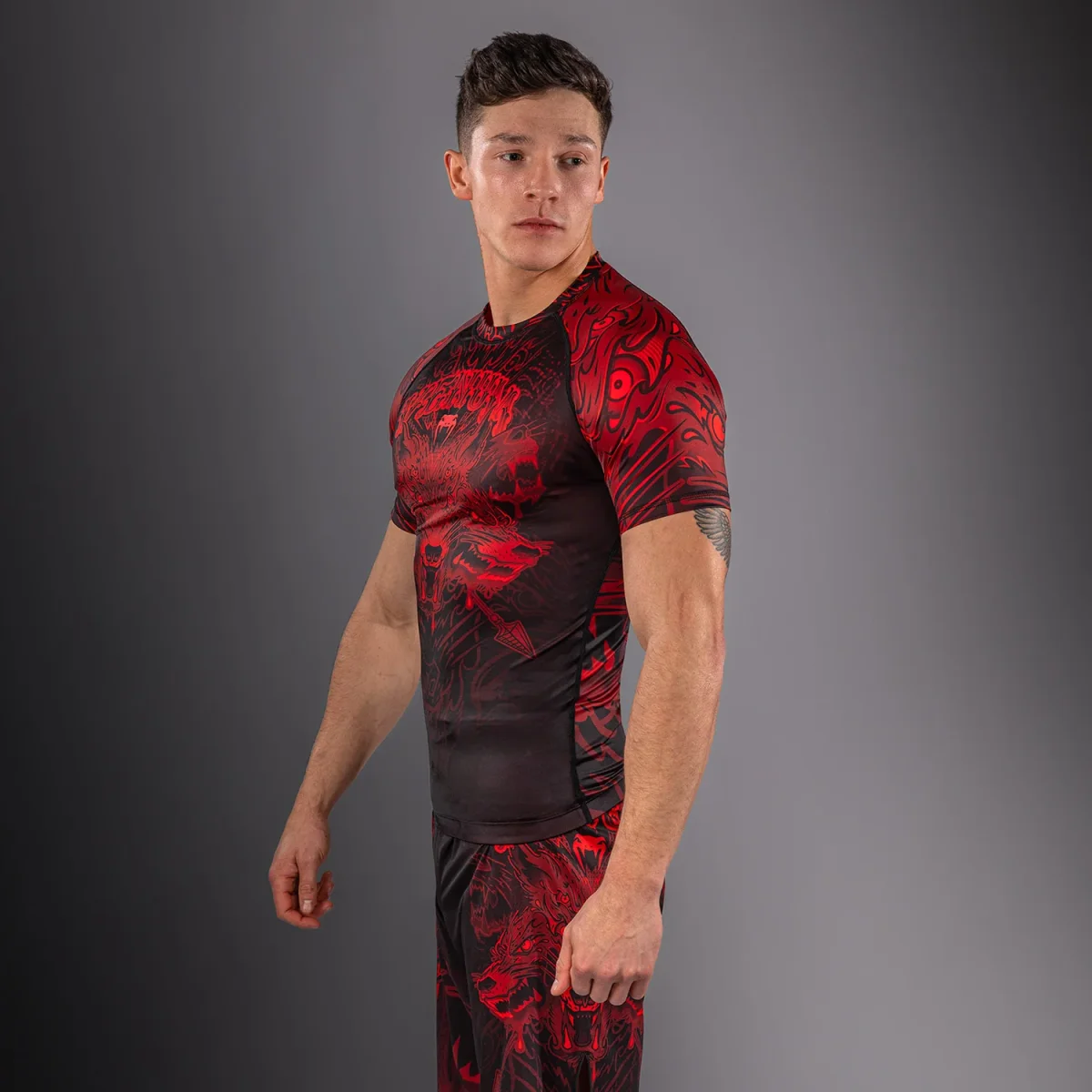 Le Rashguard à Manches Courtes Venum Wolf Atak agit comme une seconde peau résistante, protégeant des éraflures et brûlures lors du grappling. Sa coupe compressive favorise la récupération musculaire. Léger et flexible, il offre une liberté de mouvement optimale au sol comme debout. Ses coutures renforcées tiennent bon face aux entraînements intensifs en JJB, MMA et musculation.