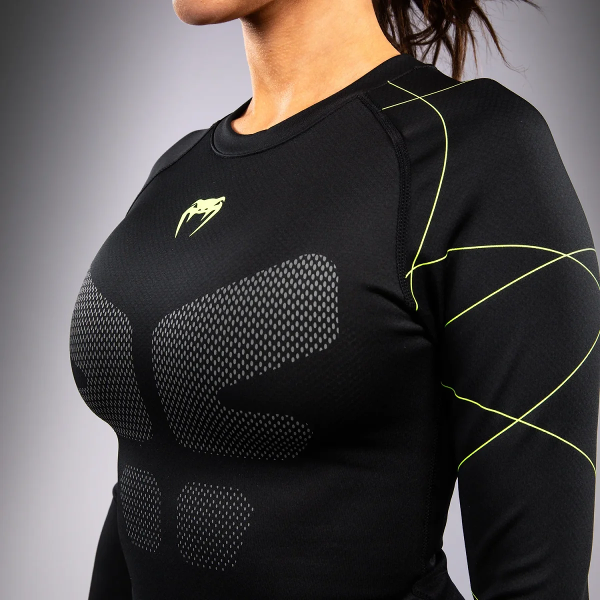 Le Rashguard manches longues Venum Training Camp 4.0 pour femmes sert de seconde peau pour assurer à la fois la protection contre les blessures et la liberté de mouvement pendant le jiu-jitsu no-gi et le grappling. La technologie de compression du rashguard favorise également la récupération musculaire.