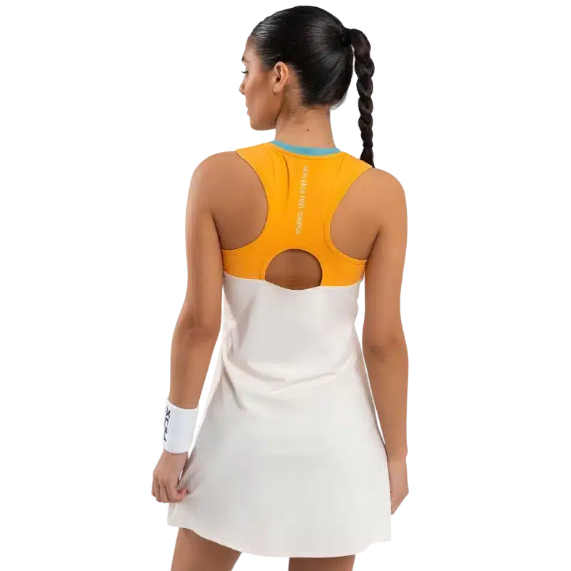 La Robe Nox Pro incarne le parfait équilibre entre style et technicité. Spécialement conçue pour les joueuses de padel, elle associe une coupe féminine fluide à des matériaux hautement performants. Son tissu extensible et respirant offre une grande liberté de mouvement et une ventilation optimale, même lors des matchs les plus intenses. Grâce à la technologie Balance Fresh, la robe assure une excellente régulation de la température corporelle et un séchage rapide.