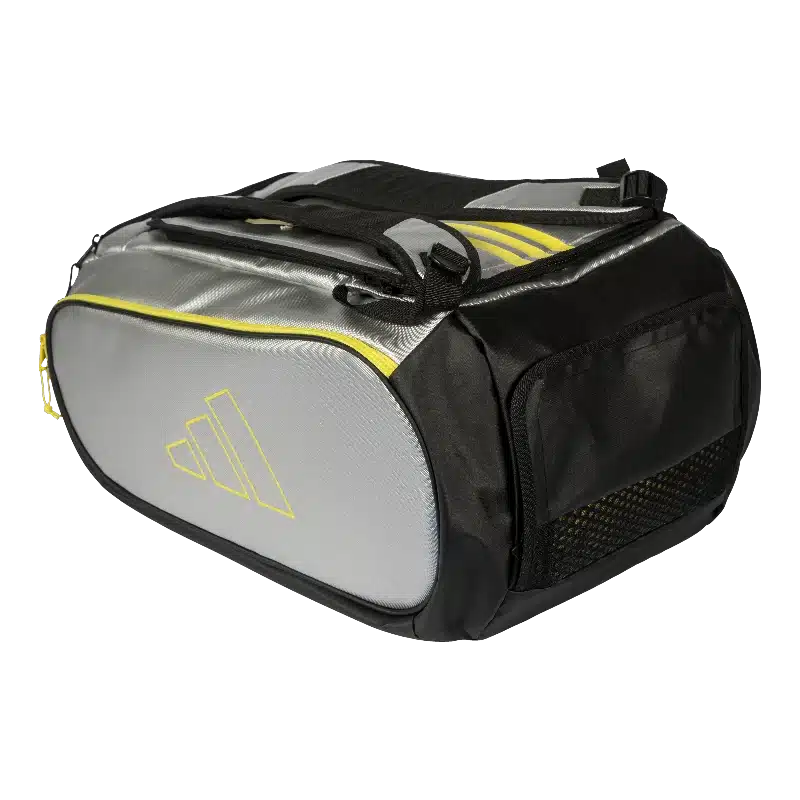 Ce sac de padel intègre plusieurs compartiments fonctionnels, dont deux poches latérales isothermes pour protéger les raquettes des variations de température. Une poche indépendante ventilée permet de transporter les chaussures ou les textiles humides, évitant tout contact avec le reste du matériel. Les bretelles rembourrées quant à elles, offrent un port confortable, même lorsque le sac est chargé. Avec son volume bien réparti et son agencement pratique, le modèle Adidas Tour 3.5 2026 répond parfaitement aux besoins des joueurs qui veulent se déplacer avec tout leur équipement, sans manquer d’espace.