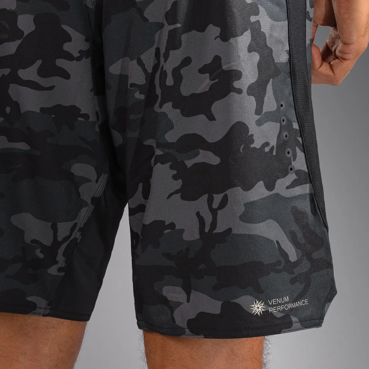 Les shorts de combat Venum G-Fit Air en camouflage urbain numérique offrent un style contemporain qui s’associe parfaitement avec le rashguard assorti de la même collection.