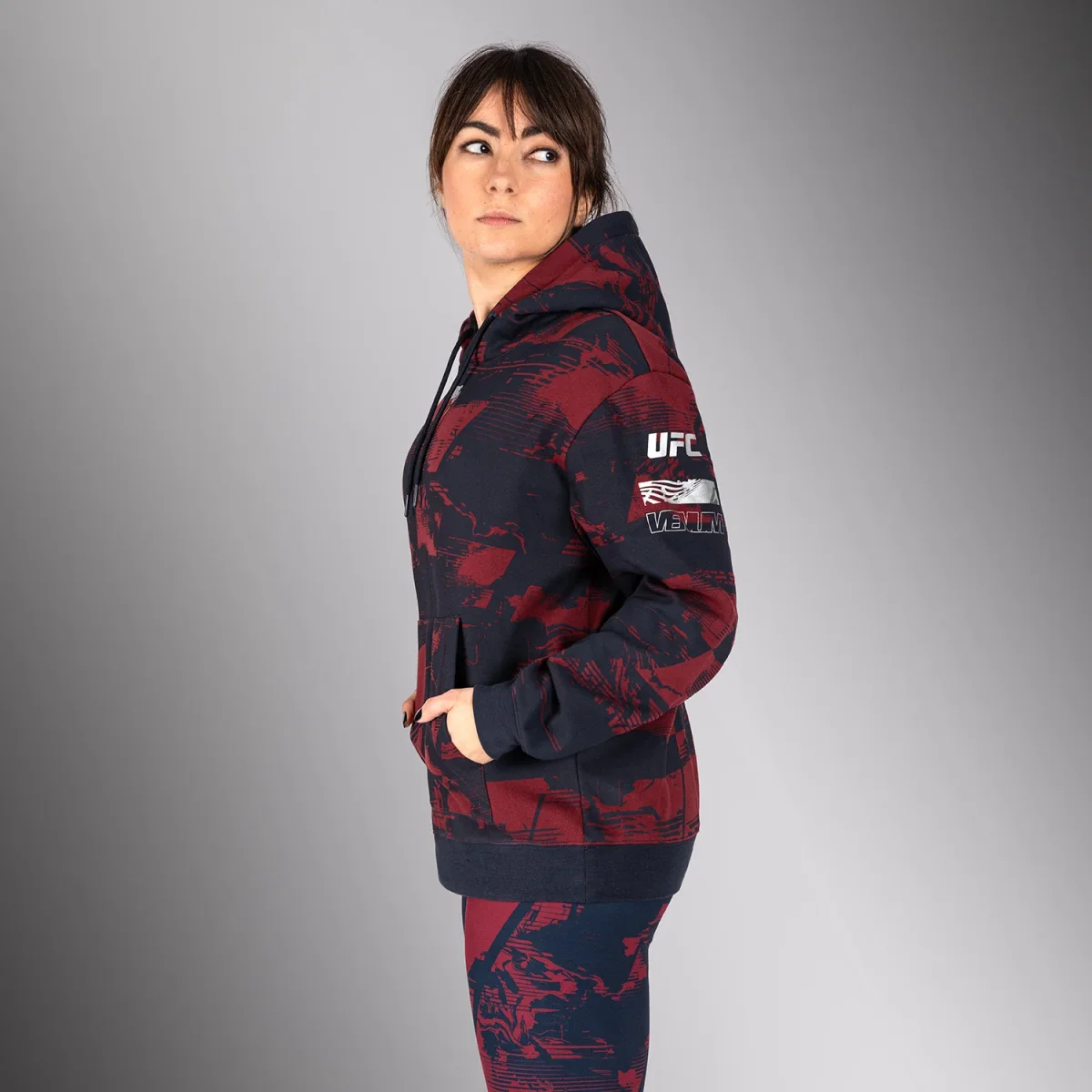 Le sweat à capuche Women’s UFC Zenith by Venum Fight Week arbore un branding visible sur la poitrine, le bras gauche et l’arrière de l’épaule droite. Sa poche kangourou à l’avant et sa capuche avec cordon de serrage apportent la touche finale à ce sweat premium.