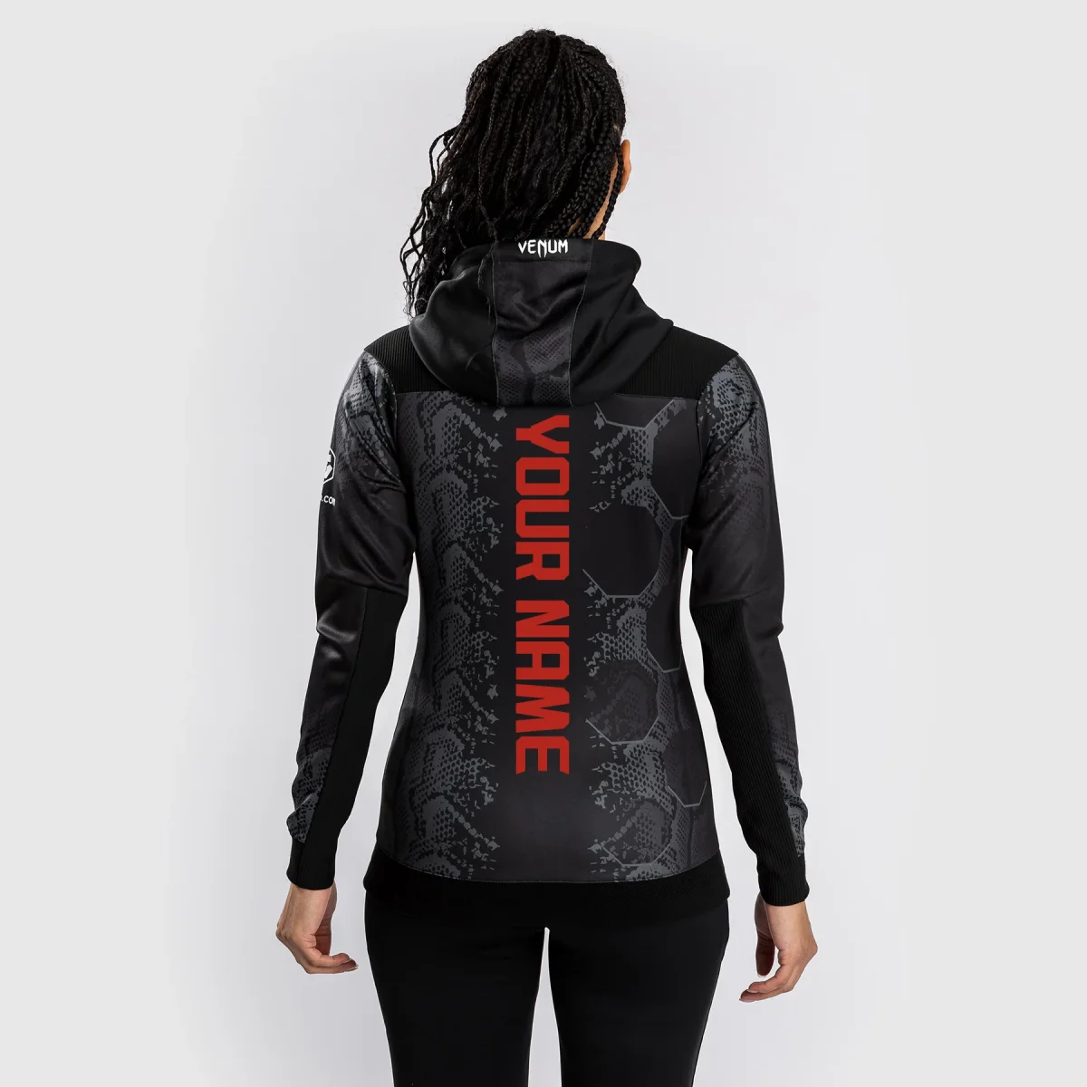 Le tissu est léger et respirant tout en restant légèrement extensible, offrant un maximum de confort et de liberté de mouvement. Les manches sont réglables pour permettre aux athlètes d’enfiler et d’enlever le sweat à capuche tout en portant des gants de MMA.
