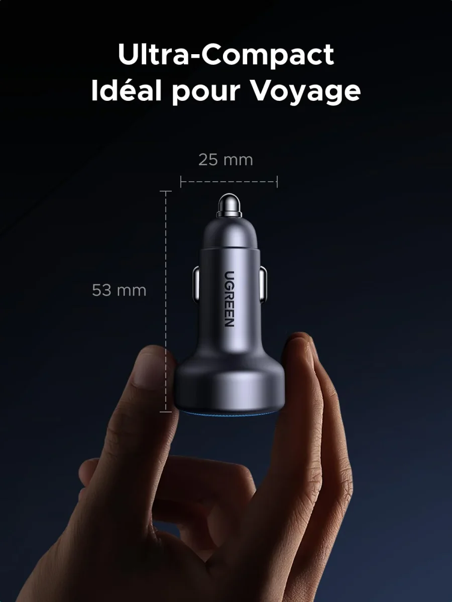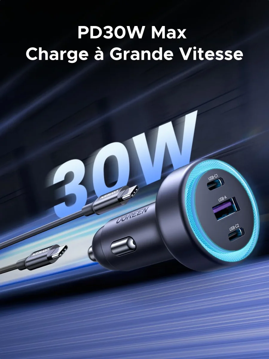UGREEN Allume Cigare USB C 3 Ports 30W PD QC 3.0 Chargeur Voiture Rapide Lumière LED Compatible avec iPhone 16 Plus Pro Max 15 14 13 Galaxy S24 Ultra S23 Pixel 9 8 7