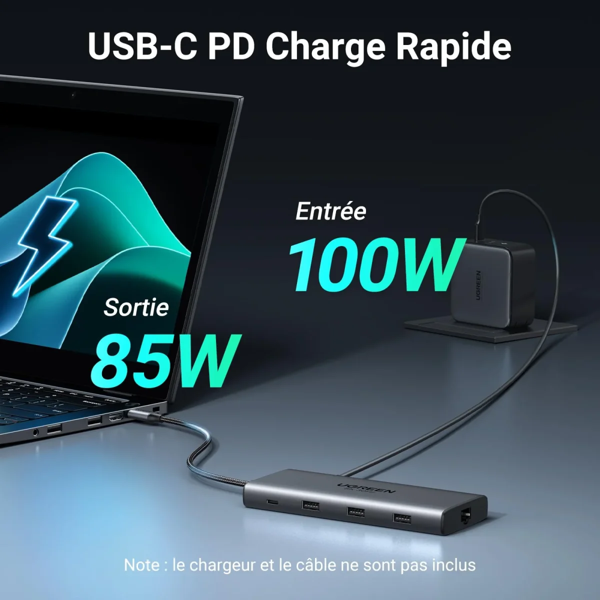 Petit conseil : le port femelle USB-C 3.0 ne supporte pas la charge ou la transmission vidéo. Veuillez faire la distinction entre le port de charge USB-C et le port de données USB-C.