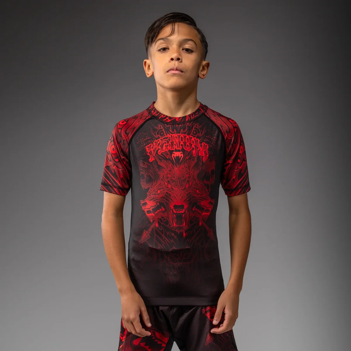 Rashguard à Manches Courtes Pour Enfants Venum Wolf Atak – Noir/Rouge
