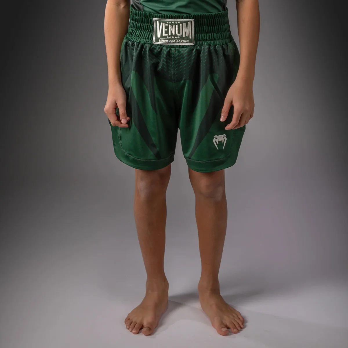 Short de Boxe Enfant Venum Attack – Vert Forêt/Blanc Cassé
